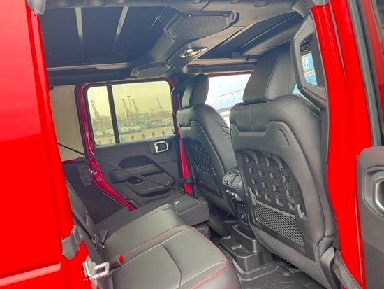 阿尔派音响三段可拆卸硬顶(顶板储物包,后窗除霜,后窗雨刮器)四驱,2.0T,8速自动,一键启动,红色拖钩(前2+后1),十字节半轴,电动加热外后视镜,全尺寸备胎,17寸轮,轮胎285/70/17,高位轮眉,原车1.5寸升高,红色硬顶,主驾驶手动8向调节,带锁杂物箱,多功能方向盘,松下8.4寸大屏,导航音响包,UCONNECT 第四代车机系统,越野APP,苹果和安卓手机连接,无钥匙进入,杯垫照明,8扬声器,4个USB接口,前后脚垫,倒车影像,电动车窗,电动门锁,安全警报,自动大灯,后排座椅60/40可折叠,自动空调,4.1后桥比,Rock-Trac双速机械分动箱,Red trail徽章,Rubicon贴。