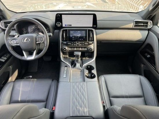 全新雷克萨斯LX600新车的中控台整体依旧采用Tazuna Concept(缰绳)设计概念,绝大部分的功能都被集成在了中控台顶端的12.3英寸悬浮式中控屏内,支持语音控制、Apple CarPlay/Android Auto手机互联、远程OTA、车载WiFi以及互联网浏览等功能。车辆启动按钮被设置在了中控屏一侧,并首次配备了指纹识别技术。