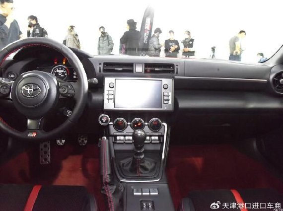 内饰方面,GR86车舱看起来平直整洁,采用许多塑料部件,搭载7英寸液晶仪表和8英寸全彩内嵌式中控屏,支持有线连接苹果CarPlay和安卓Auto。车子中央扶手箱内有两个USB充电口,没有无线充电槽。扶手上方有加热功能按钮,我觉得在国内北方城市有切实用途。我喜欢中控屏下三个圆形冷气调控旋钮及一排金属按钮,有点类似战斗机舱按钮的设计,看起来非常酷。