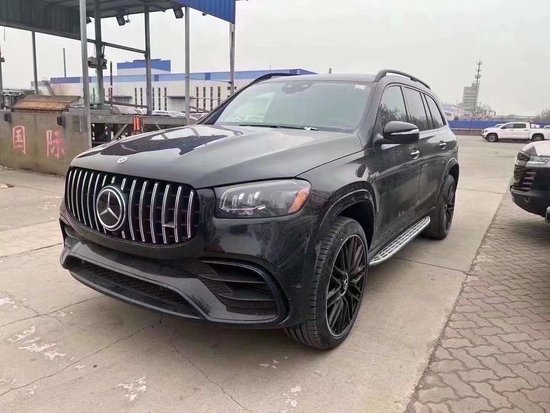 23款奔驰GLS63前脸底部的包围非常有性能感,底部整体采用了亮黑色涂装,两侧的空气导流槽采用了风刀装饰,销售经理:张女士 18502224231 微信同步中间的位置呈梯形的造型,底部采用了铲形设计。