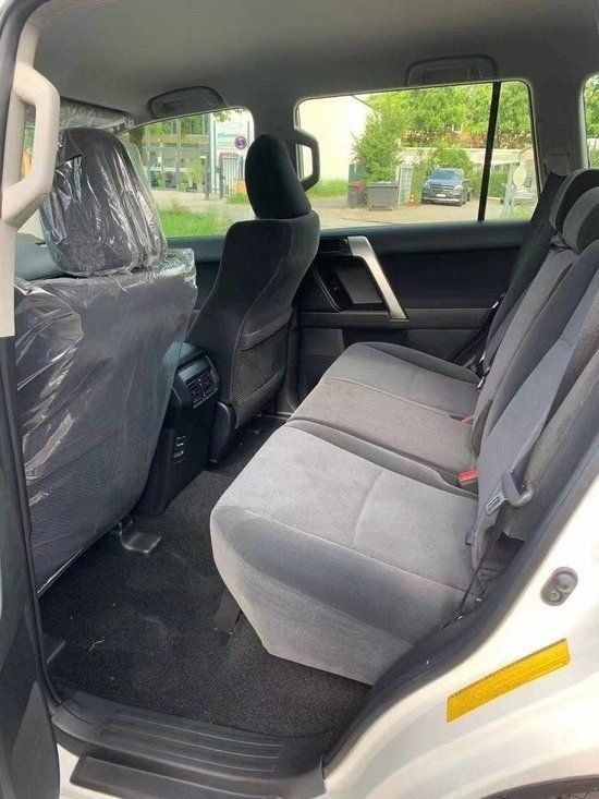 23款丰田霸道2800柴油配置:无窗,五座,底挂备胎,丝绒座椅,九气囊,17铝轮,一键启动,智能卡,倒车雷达,中央差速锁,电动调节后视镜,电折镜,黑色门把手 黑色后视镜,多功能方向盘,巡航定速,雾灯,黑色踏板。