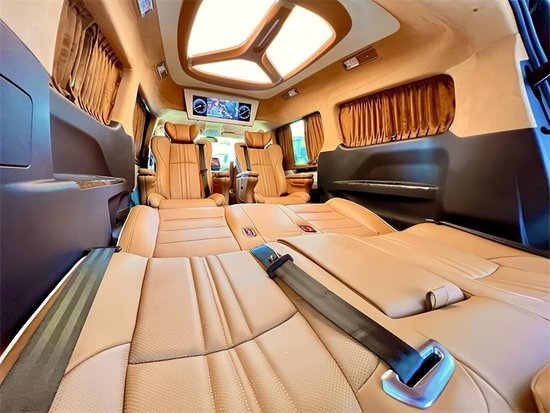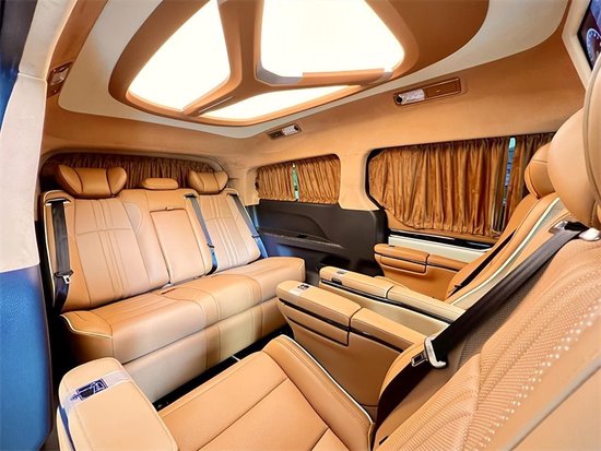 车内采用麂皮绒的软包加上星盾天幕顶灯,整车在看不到的地方,比如四周全部做了隔音的处理,窗户上都加装的是高级私密窗帘,既可以避免阳光的直接照射,维护车内的一个用车环境,也可以很好的保护我们车主的隐私。