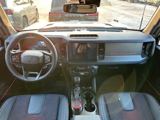 2023款福特烈马猛禽版内饰方面,福特Bronco 猛禽采用特殊材质座椅,表面选用超耐磨且可清洗微绒面料,内部骨架采用特殊形体支撑,防止驾乘人员在越野中左右摇摆。安全带采用醒目的橙色配色,与内饰黑色主色调行程鲜明对比。
