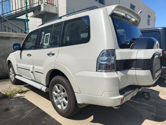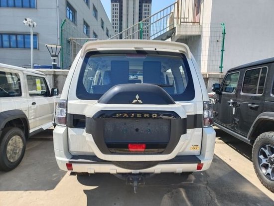 尾部造型方面,采用了背负式备胎设计,备胎罩为黑白双拼设计,整体与车身颜色相融合,上方有黄色三菱车标,下方为帕杰罗英文标识,车顶带有大尺寸扰流板,底部带有银色导流槽设计,而且带有黑色拖车勾,实用性很高。