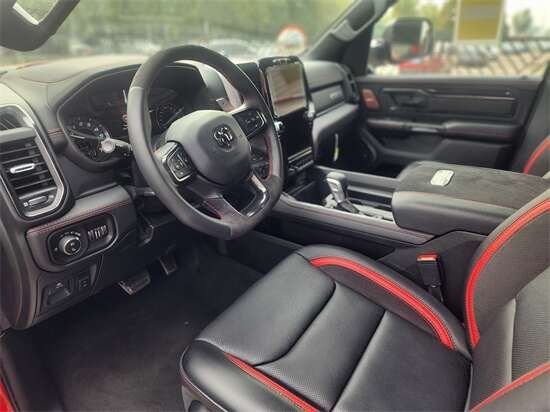 全新道奇霸王龙TRX在内饰部分进一步强化了其高性能版本的形象,中控台和座椅随处可见的TRX标识便是最好的例证。同时,作为道奇家族的旗舰车型,新车还配备了12英寸竖置中控屏幕,除了支持蓝牙、导航和车载Wi-Fi等常见功能,还支持Apple CarPlay和Android Auto手机映射
