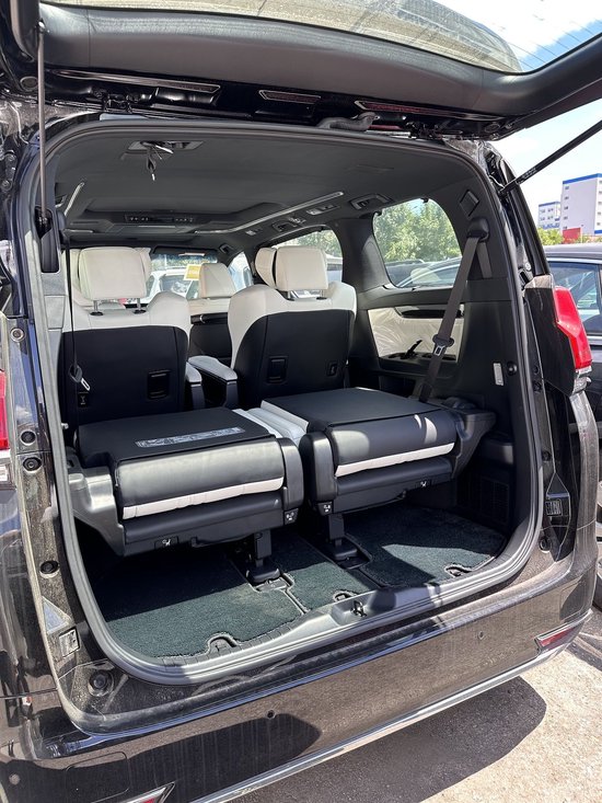 LED序列式方向灯/LED日间行车灯/LED前、后雾灯、车侧后视镜(自动收起/防眩、除雾功能)、左、右两侧电动门(防夹/遥控功能)、电尾门(感应开启/记忆/防夹/遥控功能)、电动双天窗、后扰流板、17寸铝轮、12.3寸触摸屏(支持手机互联)、13.3寸吸顶式屏幕、真皮原木方向盘、多功能方向盘带方向调整、巡航定速、车内LED氛围灯、销售经理:张女士 18502224231 微信同步上车踏板、前后排阅读灯(前排触控、后排遥控)、Semi-AniIine顶级皮椅/水墨银饰板、MarK LevinsonPremium Surround音响17喇叭、驾驶员8项电动座椅带3项记忆、副驾驶座椅4项电动调节、前排座椅通风/加热、独立三区空调(后排独立控制)、第二排Ottoman电动座椅(扶手控制/小桌板/位置记忆、座椅通风功能冷、热)座椅可前后移动、侧窗手动遮阳帘、三排分离式座椅、nanoe 空气净化系统/花粉过滤系统