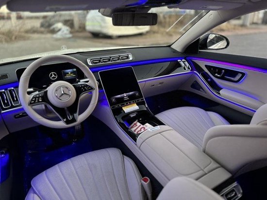 23款奔驰S500L的内饰设计就像一座移动的总统套房,相当的豪华。中控部分搭载了双屏设计,12.8英寸的中控大屏以及12.3英寸的悬浮式行车电脑屏,更多咨询请致电:苏经理187 2222 7779 (电话同微信)配上米色的内饰设计,颜值感很出众。此外,车内还使用了HUD投影显示以及高亮的钢琴烤漆面板,将科技感与时尚感结合得相当到位。