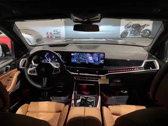 全新23款平行进口宝马X7我们在看看它的内饰表现。从全新一代宝马7系 (配置|询价)开始,宝马在内饰上的布局也宣布正式进入到了新纪元。与7系一样采用了贯穿式的液晶屏,但是为了能与SUV相匹配,整个中控台的布局相对比较高耸。包括两侧的空调出风口也都采用了双元素,感觉上比7系更加的灵活!三幅式的方向盘略微的有些突兀,这是小编相对不满意的地方!再看档杆,以往的水晶档杆已经换成了现在这种旋钮式的布局,整体上的风格明显更加简单!而且加入了非常多的按键区,带来的便捷度应该会更好!