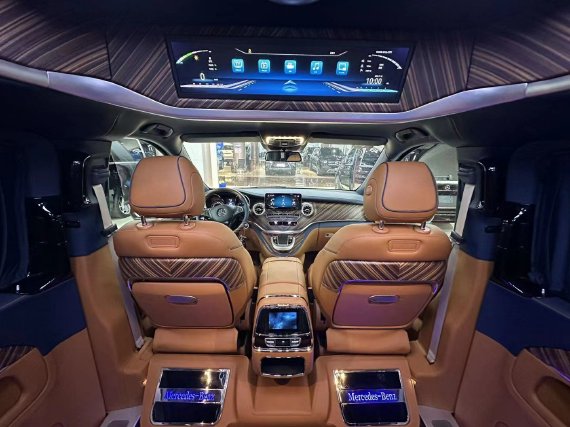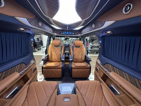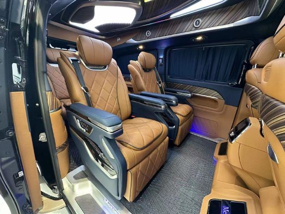 这款奔驰v260L商务车七座方向盘运用了碳纤维等珍贵科技感材料。驾驶舱的正副驾驶座椅也做了全新升级,座椅前端做了延长腿托,停车等人或者休息的时候将延长垫前拉,增长座椅长度,能够很好的缓解腿部疲劳!