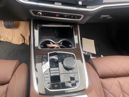 23款宝马X7内饰部分采用最新家族式设计语言,使用大量真皮、木纹饰板进行包裹。配备12.3英寸带有注意力检测的全液晶仪表和12.3英寸悬浮式触控显示屏。空调出风口与温度显示屏、实体功能按键结合在同一区域,并使用银色装饰条进行点缀。下方盖板下方为带有加热、制冷功能的杯架,全新的水晶电子挡杆造型十分精致,进一步提升了车内的豪华氛围。