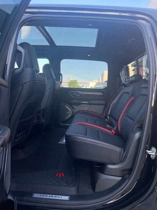 2023款道奇霸王龙内饰部分进一步强化了其高性能版本的形象,中控台和座椅随处可见的TRX标识便是最好的例证。2023款道奇霸王龙还配备了12英寸竖置中控屏幕,除了支持蓝牙、导航和车载Wi-Fi等常见功能,还支持Apple CarPlay和Android Auto手机映射。