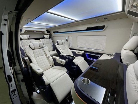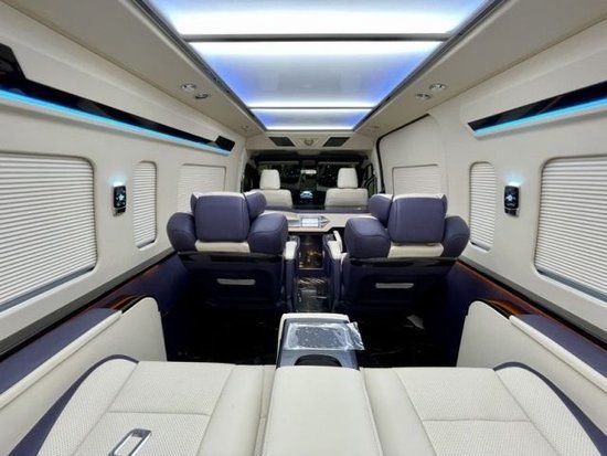 2023款巅峰设计丰田海狮 汽油V6 3.5L 7GR发动机 全国上牌!首席设计师一一晓凯长宽高:5915*1950*2280mm改装后:7座外观颜色有: 白色内饰:暮光紫雪堆白外观配置:埃尔法 (配置|询价) 外观套件LED转向灯、日间行车灯、雾灯、电镀中网、全新设计中网、电镀后视镜罩、尾门饰条等等内饰配置:DVD智能32寸升降显示器、导航、倒车影像、仪表实木内饰、主副驾驶真皮、主副司机实木内饰、自弹雨伞、迈巴赫挂衣架、内饰把手实木、涡轮出风口、全皮软包内饰顶棚、两侧航空灯、两侧窗帘、两侧装饰框及中门尾门、全新设计艺术吧台全新机床雕刻、220V电源、两张埃尔法样式航空座椅电动前后、电动靠背、脚托、加热、按摩、通风、旋转、三人连体加宽加大加厚沙发、艺术定制大理石地板、两侧饰板软包、阿尔派音响系统,车内两侧饰板加装隔音隔热棉及止震垫,A380空客顶灯、手机无线充电,车辆夹层,72色氛围灯。