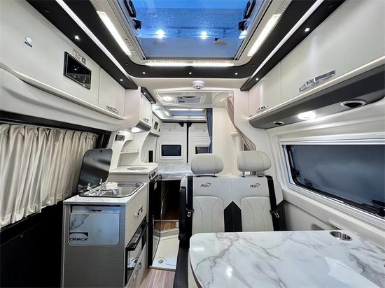 整车尺寸为5465mm×2080mm× 2480mm,搭载2.0T发动机,新款搭载了9AT变速箱,强劲的动力让起步和加速都有卓越的表现,全车使用大尺寸钢化玻璃天窗,让视野扩大,满天的景象一览无余。B型房车的外部配置基本都是比较简洁的,除了右侧上方的FIAMMA手动遮阳蓬和户外照明灯,就是水电接口和户外淋浴器了。两侧后方都做了拓展盲窗的设计,是为了扩大尾部横床的长度。高强度的硼钢车身,整车都做了保温隔热降噪。133-7022-6676