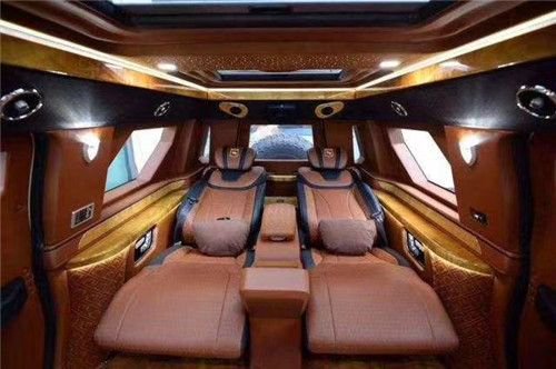 新车内饰采用了双色混搭,座椅纯手工缝制,驾驶舱内有夜视系统、卫星导航、防生化毒气系统、供氧设备等安全设备,还有多媒体影音视讯系统、高科技卫星侦测系统。新车前、后舱之间设有隔屏,配以22寸超薄显示器,在最大程度上保证了后舱乘客的私密性的同时又可以在旅途中享受影音快乐!