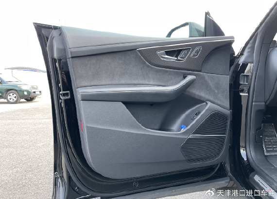 但作为一款性能车,RS Q8还是加入了一些特定的元素来凸显它的运动氛围。比如门槛饰条、方向盘底部和座椅靠背都有RS标识来凸显它的身份,迎宾灯还会显示“Audi Sport”的字样。