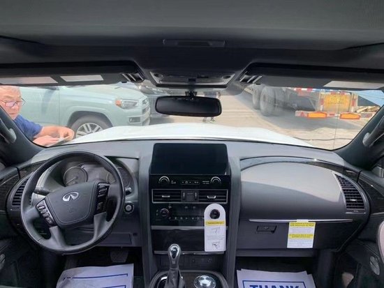 22款加版英菲尼迪QX80Luxe 白/黑 配置:Luxe豪华版,5.6自然吸气 V8发动机,400马力,413磅英尺的扭矩,盲点警告(BSW),牵引能力-8500磅,8座,天窗,真皮加热方向盘,远程遥启,车身镀铬套件,20寸锻造铝合金轮毂,12.3英寸信息触摸立屏,半苯胺菱形格座椅,主动式头枕,二排船长座椅带中央扶手,BOSE音响,17个扬声器,双头枕后排娱乐,随速转向助力,预碰撞警告,盲点监测,车道偏离警告,驾驶员注意警告,雷达测距,环车影像,无线充电,车载蓝牙,前排座椅通风加热,前排座椅记忆,全模式四驱,自动牵引力调节,Apple CarPlay和 Android Auto