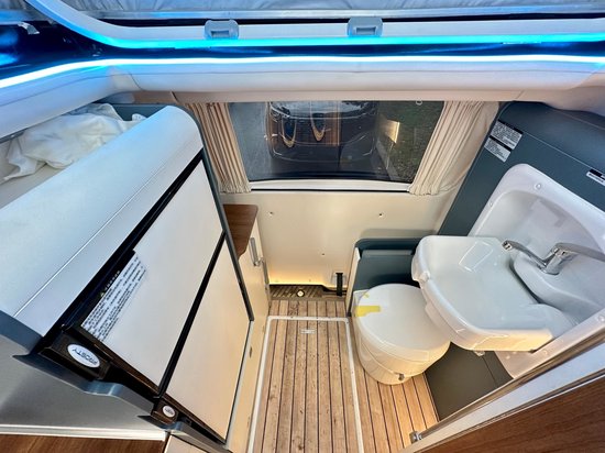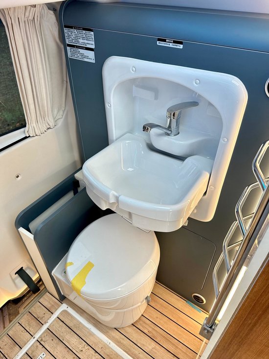 在车尾区域,该车设计了简易的卫生间,即使在高速堵车也能够满足女士的生理需求。配置方面主要有房车专用马桶和折叠式洗脸盆,在这里简单的洗漱也是没有问题的。