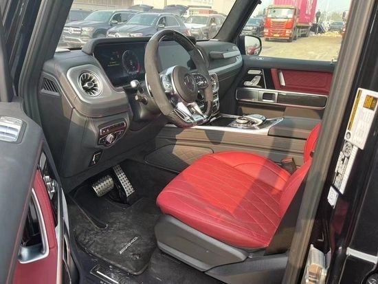 奔驰G63 三碳 大满配 AMG暗夜包:(熏黑中网 熏黑灯罩 熏黑备胎罩) AMG暗夜加强包(熏黑前后车标,熏黑车型标) 独家(高级)内饰组件 电控舒适控制 真皮包覆把手 主动多轮廓座椅 座椅按摩 通风 加热 (G MANUFAKTUR钻石包)定制菱形内饰组件 带缝线工艺菱形格室内装潢 带缝线工艺菱形格尾门装饰板 带缝线工艺菱形格膝部装饰板 带缝线工艺菱形格车门装饰板 仪表盘上部真皮包覆 内饰设计优化 AMG碳纤维性能组件: 碳纤维方向盘 碳纤维发动机保护罩 车门碳纤维装饰 多媒体控制台碳纤维装饰 仪表台下方碳纤维装饰 AMG性能组件 AMG方向盘驾驶动态调整(GT弹射按钮) 地板和行李箱套装:(载重仓橡胶地垫 室内橡胶地垫) 22寸哑光熏黑轮毂(红卡钳) 孟加拉红内饰 红色砸线 熏黑前杠 黑色鹿皮顶棚