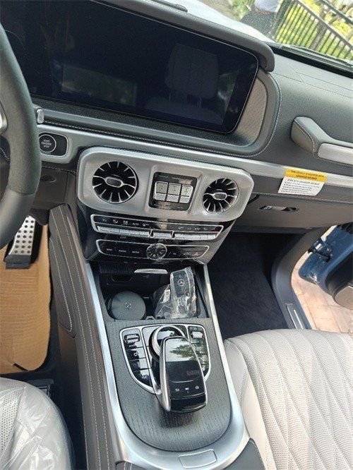 2023款奔驰G63内饰方面,奔驰的设计绝对可以用惊艳来形容,无论是经典车型还是超豪华车型甚至是入门级的豪华车上,内饰方面都会让你眼前一亮,这也是奔驰的一个特色。所以在这部全新的G63在内饰的表现上也是情理之中的,但是细节上还是有些小小的意外。这种感觉是打开车门的瞬间就能够感受到的。首先仪表和中控屏依旧是采用了同一款液晶屏显示,第一感觉就是科技感爆表。而其他方面例如方向盘,空调出风口,挡杆等等的设计充满设计感。