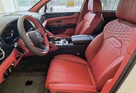 2023款宾利添越加长版 宝石黑/热刺红&黑鲸 木饰:黑钢琴木、选配配置:流光菱形格套件、3幅式双色加热真皮镶边方向盘、宾利徽章座椅刺绣、黑钢琴木、22寸5幅定向喷漆轮毂、4+1舒适座椅。