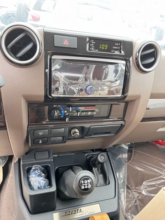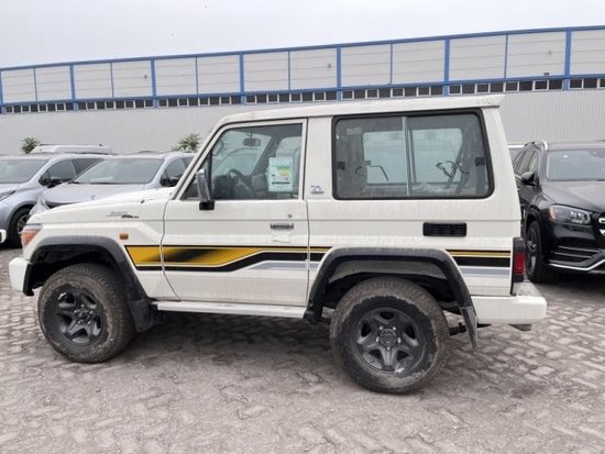 配置:LC71 70周年:4225 X 1870 X 1930,轴距2310,离地距236mm,最小转向半径5.5m,油箱90L,排量3956CC,功率228hp/5200RPM,扭矩36.7KgM/3800RPM,5速手动挡,欧四,分时四驱,后差速锁,轮胎265/70R16,前碟刹后鼓刹,ABS,VSC,BA,EBD,HAC,ATRC,2气囊,黑色保险杠,电动后视镜,脚踏板,数码钟,70周年纪念仿真皮座椅,5座,空调带加热,手动天线,电动门锁,电动车窗,7英寸导航屏,USB,AUX,蓝牙,绞盘,车窗除雾,间歇雨刮,手扣箱制冷,70周年纪念标,附属油箱,前后雾灯,轮眉,TOYOTA立标,倒车影像,唯一,胎压检测,桃木方向盘,70周年桃木面板,彩条,真皮拍挡头,70周年纪念版横条前格栅。75万
