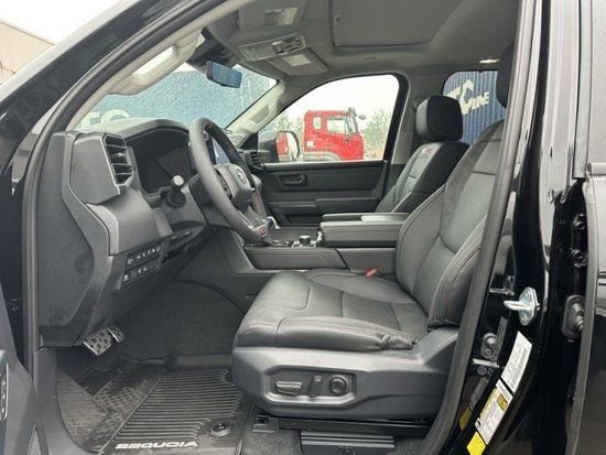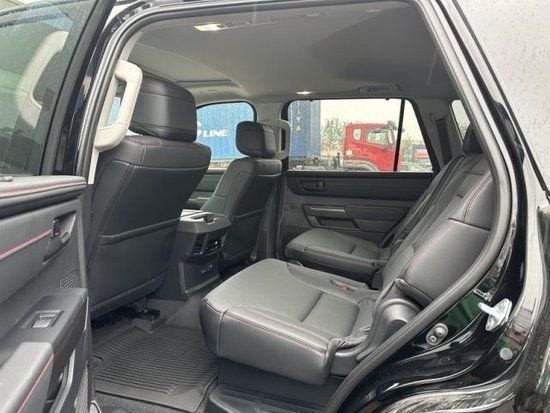 23款丰田红杉的内饰的实用性与空间利用率在这代红杉身上均得到提升,坐进车内,第一感受就是大,前排的两个大尺寸的真皮座椅,自带打孔透气皮料,四幅式多功能方向盘,握在手里的质感不错,转向也没有想象那么重,T型的中控平台,尺寸方面也比一般车型大不少,14英寸的中控触摸屏,集成了几乎所有的影音娱乐以及车身控制功能。