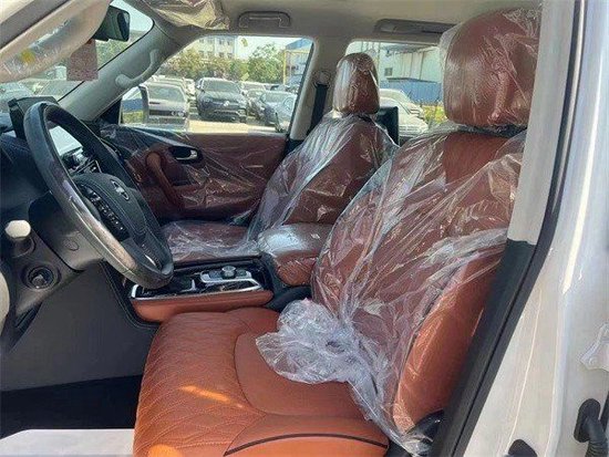 二排增加了中央扶手,充满了行政气息,再搭配咖色的菱形格真皮内饰,一显高档豪华,气场直逼高端品牌英菲尼迪。屏幕的下方依次为多媒体控制区、出风口和空调控制区,其中空调控制区采用了物理按键搭配液晶显示屏的设计,保证操作便利性的同时也提升了科技感。