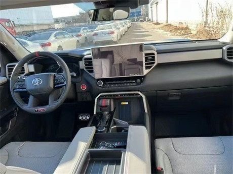 2023款丰田坦途采用悬浮式中控大屏设计,中控屏从低配版8英寸到顶配版的14英寸,并且还提供有12.3英寸的全液晶仪表盘可供选择,支持CarPlay和 Android Auto系统。值得一提的是,新车全系标配Toyota Safety Sense 2.5智行安全系统,具备拖挂模式、蠕行模式、越野模式等多种驾驶模式