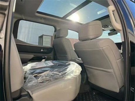 2023款丰田坦途车内乘坐、后排座椅宽大,足以满足身高195cm的贵宾,第二排座椅可以完全折叠收起,为乘客提供更宽敞的腿部空间,已经达到了中大型车的水平,完全可以满足舒适乘坐的需求,部分特殊的装载给您的路途更添信心