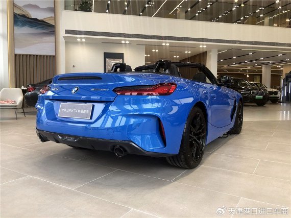 新款宝马Z4侧面与现款车型几无二致,线条简洁流畅。其还是保留了软顶敞篷,开闭方式很是拉风。而双五辐式轮毂依然抢眼,蓝色制动卡钳也是一大亮点。前翼子板处装饰套件非常犀利,熏黑外后视镜能够提供宽阔的观察视野。