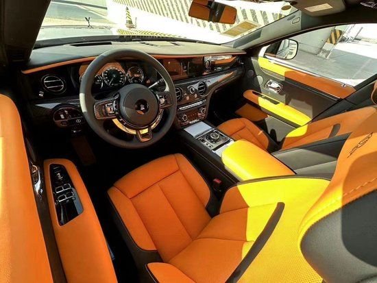 2024款劳斯莱斯古斯特,纯手工打造的内饰处处都体现着精致感由2000名工人经过60双手花费至少20天打造,三辐方向盘尺寸适中握起来很舒服。控台配有一块石英表看起来很复古与劳斯莱斯车型的高贵相互映衬。中控台配备了10.25英寸显示屏,集成了导航多媒体蓝牙电话行驶信息等。通过类似iDrive的旋钮区域控制,也带有手写功能。