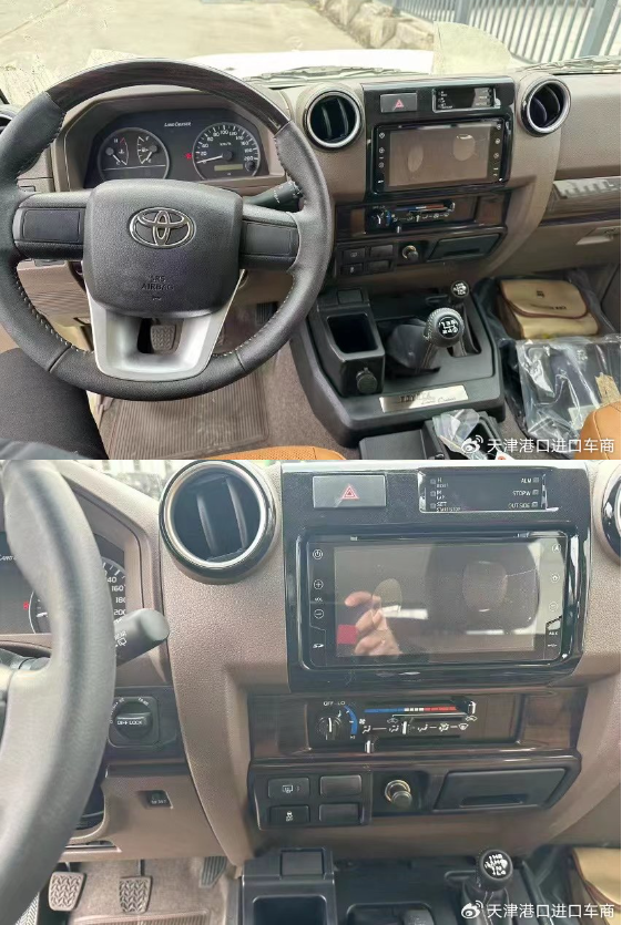 丰田LC71 70周年纪念版的内部,该车内饰采用了几十年不变的经典造型设计,变化就是换上了全新的圆形空调出风口,而且中控也换成了大屏,并且新款车型增加了最新的手机充电口和杯架的设计,在实用性方面有所提升。