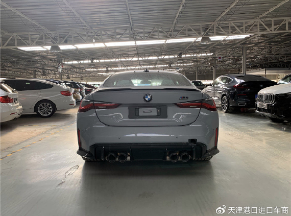 宝马M4雷霆版车尾部分,新车尾部继续使用了L型尾灯组,区别后尾门上还点缀有熏黑扰流板。此外,后包围底部继续使用了大量的碳纤维熏黑运动套件、双边共四出运动排气。