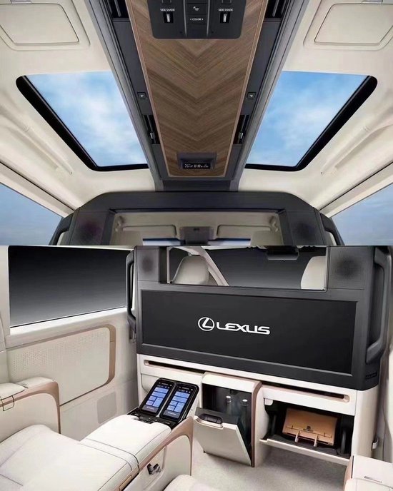 同样,雷克萨斯LM500h在内饰的布局上,也是把豪华展现的淋漓尽致。48寸的多媒体屏幕,而且车顶两侧的天窗可以分别开启,这个设计真的是太贴心了。销售经理:187 2222 7779 微信同步并且,车内还有类似于手机的两块控制屏。可以说,雷克萨斯LM500h车内的空间不管是舒适度还是智能化都是一流的。据说以后会提供7座版本的车型。