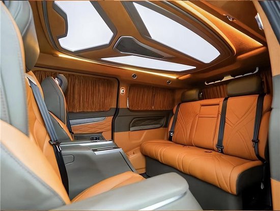 二三排座椅经过了全面换装之后,舒适度极高,二排座椅更是拥有座椅通风、座椅加热、座椅按摩等功能,疲惫 的时候还可以将腿托升起来,给予最舒适的支撑。如果将第二排座椅向后旋转180°之后,还能同第三排座椅形成一个独立的会客区。无论是休闲娱乐还是移动办公都是非常不错的一个独立空间!