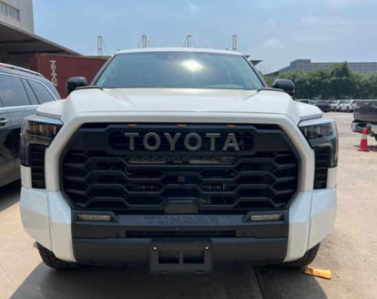 2023款丰田坦途直接提供了有棱有角的车头前脸,大尺寸蜂窝状进气中网搭配镀铬边框处理,两侧泪痕造型LED矩阵大灯视觉效果并不输给福特猛禽 (配置|询价)(配置|询价)。同步车身侧面看也有了方盒子外观效果,甚至还要熏黑车窗立柱营造出悬浮车顶。黑武士改装风格轮毂搭配原厂越野轮胎,素车就能够实现不错的越野通过性。