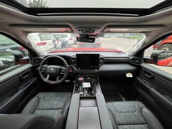 23款丰田红杉内饰的实用性与空间利用率在这代红杉身上均得到提升,坐进车内,第一感受就是大,前排的两个大尺寸的真皮座椅,自带打孔透气皮料,四幅式多功能方向盘,握在手里的质感不错,转向也没有想象那么重,T型的中控平台,尺寸方面也比一般车型大不少,14英寸的中控触摸屏,集成了几乎所有的影音娱乐以及车身控制功能。