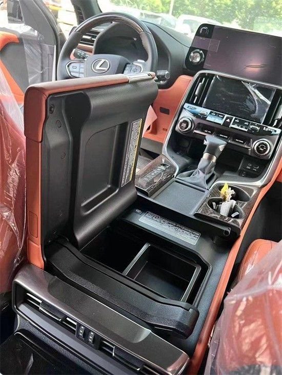 雷克萨斯LX600内饰用料得到了优化升级、并首次加入了双触屏设计,位于上方的12.3英寸屏幕负责显示音频、导航等信息,下方的7英寸屏幕主要负责控制空调系统,但也可选择显示越野参数等信息