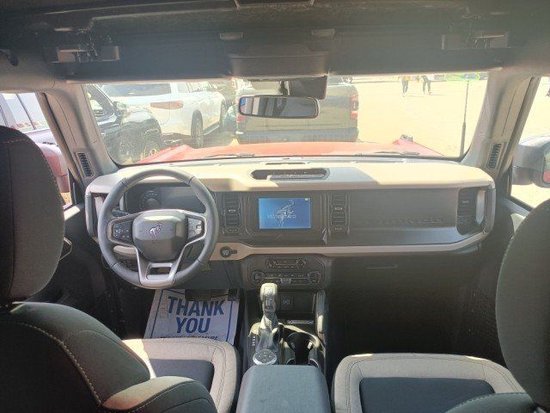 23款福特烈马Bronco车内采用硬朗的设计风格,中控台设计主次分明且有层次感,用料也厚实,多功能方向盘造型运动,中控屏幕采用内嵌式的设计增添了车内的时尚感,按键布局合理,档把设计精致,座椅宽大厚实,空间宽敞,实用性强。