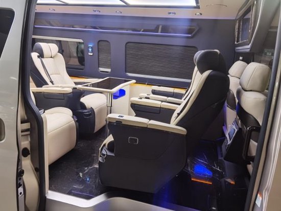 丰田海狮改装商务车在内饰的设计上追求舒适性和实用性,党作为一辆商务车的时候,丰田海狮充分注重商务车的适用范围,在内饰的设计上以大方高贵为主。360度可旋转首长席方便在乘车过程中的临时会议,大家可以调转座椅的角度,方便大家更好交流。华通丰业丰田海狮商务车,设置豪华办公桌以及秘书席,作为一辆移动的办公室,丰田海狮在内饰的设备上保证了我们所有的需求。