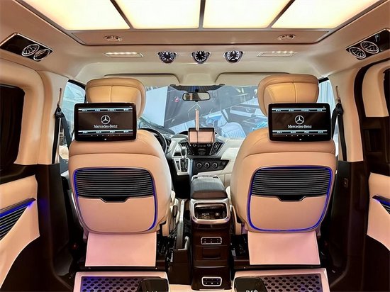 车厢顶部有多级可调的顶灯和64色氛围灯,配合隐私玻璃和车身窗帘,共同实现车内明暗度整体可调。克蒂帝亚还根据消费者对豪华商务车型的情感与功能需求,与福特进行外观、空间、舒适性的深度定制,确保改装基础车型全方面优势及市场唯一性,为商务通勤和家庭出游场景提供自己的最新方案。