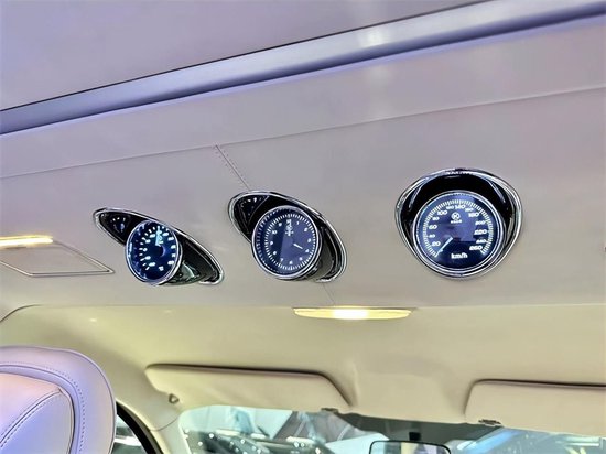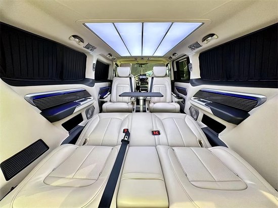 内饰采用手缝双线头层皮革,彰显品位与格调;定制后舱航空座椅采用全冲压结构座椅骨架,具有通风、加热、按摩、旋转、电解锁等功能。座椅布局同样多种可调。而在休息的时候,车辆座椅支持放倒,旋转,解锁更多车内乘坐体验。细节处理更加优秀,车顶可以为用户提供不同风格的选装服务,车辆在没有天窗的情况下可以选择自己喜欢的顶灯。