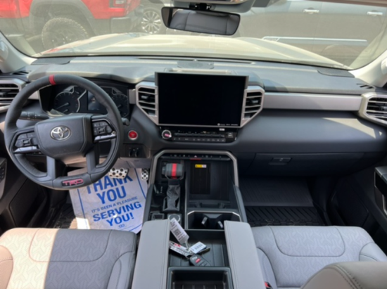 2023款丰田坦途采用悬浮式中控大屏设计,中控屏从低配版8英寸到顶配版的14英寸,并且还提供有12.3英寸的全液晶仪表盘可供选择,支持CarPlay和 Android Auto系统。值得一提的是,新车全系标配Toyota Safety Sense 2.5智行安全系统,具备拖挂模式、蠕行模式、越野模式等多种驾驶模式。