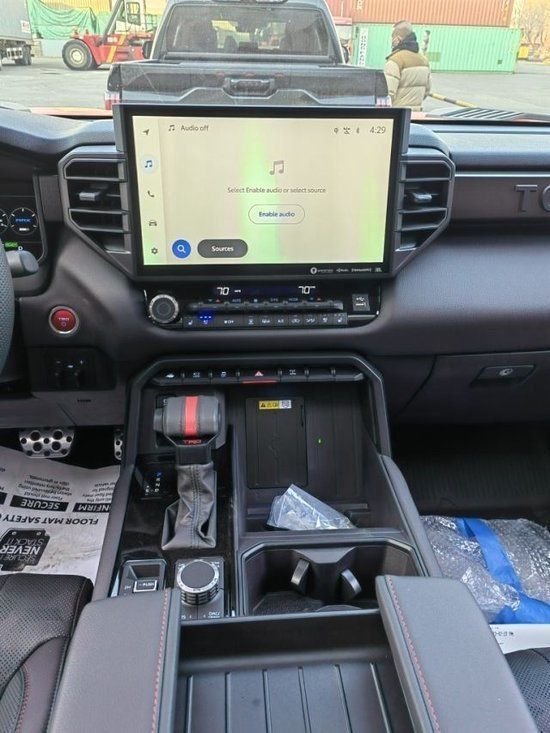 23款丰田坦途内饰同样也采用了质感十足的中控台造型设计,而且无论是中控台的造型还是最新样式的多功能方向盘,在样式方面都与新款的丰田兰德酷路泽保持一致。