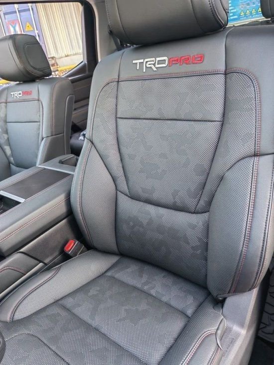 2023款丰田坦途的方向盘增加红色回正标,配备有大尺寸的悬浮式中控屏和JBL音响等。除了个性化的外观之外,这款全新的丰田坦途车型还采用了最新的悬浮式车顶以及最新的宽体车身设计,可以说在中大型皮卡领域,这款车型在外观造型方面显得很有新意,就算是与新款的福特猛禽 (配置|询价)(配置|询价)车型相比,在气场方面也丝毫不落下风。