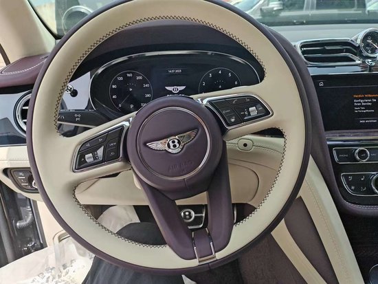 标配:座椅菱形格绗缝镀铬前保险杠 4+1舒适座椅配置 哑光直纹胡桃木金属油箱和机油箱盖 反衬色缝线感应式无线充电器 宾利微章座椅刺绣 3辐式单色加热真皮镶边方向盘后备箱智能开启 声学隔音侧窗玻璃 厚绒毛地毯衬垫 氛围灯 后门电动关闭功能 22英寸十幅铝合金喷漆轮毂 旅游包(自适应巡航控制、抬显、车道辅助、交通辅助、夜视)城市包(环影、交通道路识别运动脚踏板