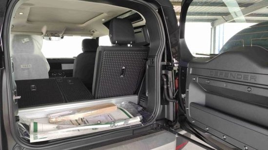路虎卫士侧面的造型更有辨识度, 线条十分硬朗又不失圆润。在接车尾的地方,有一个伸缩爬梯,上下车顶行李架取放物品也更加方便。酷黑特别版车型也是全系车型中唯一标配双色20吋钻石切割轮毂的车型,其余车型全部需要选装。