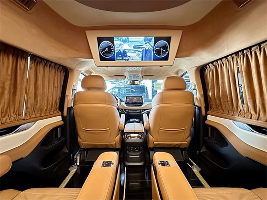 本款上汽大通G20高顶金骑士中排采用的是埃尔法 (配置|询价)同款座椅,多项电动调节与通风加热功能,乘坐舒适感也是和埃尔法一模一样地吸顶电视满足行车娱乐,旋转的中排座椅可实现面对面交流,在行车过程中也可以进来一个小型的商务会议。c