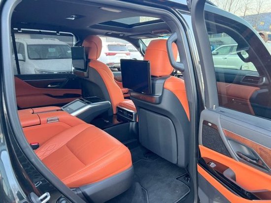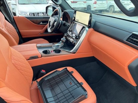 雷克萨斯LX600内饰用料得到了优化升级、并首次加入了双触屏设计,位于上方的12.3英寸屏幕负责显示音频、导航等信息,下方的7英寸屏幕主要负责控制空调系统,但也可选择显示越野参数等信息。