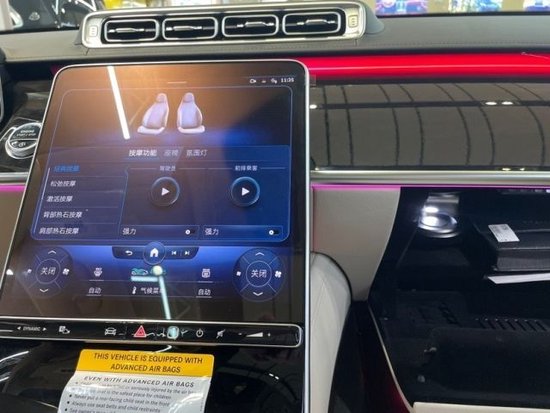 23款奔驰S500全新奔驰S500内饰,中控台垂瀑式中央触控屏从中控台纵向延伸,凸显出了简约的设计感。整个内饰的豪华感当然是无须质疑,触手可及之处几乎全用上了皮革包裹,配合带263个LED单元的动态氛围灯进一步升华了内饰氛围感。AMG Line的方向盘通过对造型的重新雕塑,变得更加立体。